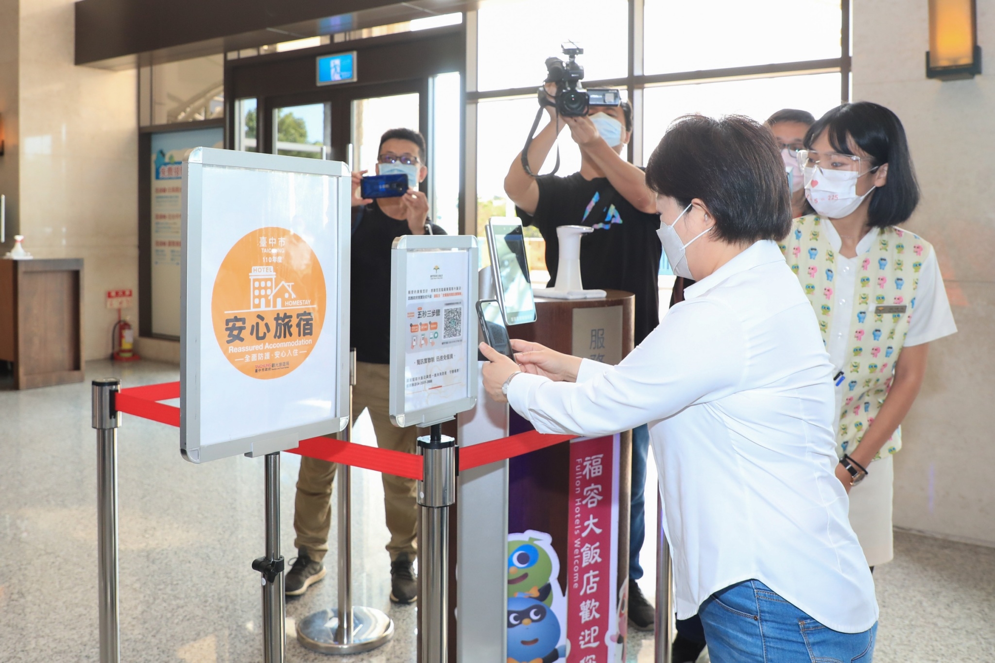 盧市長提到,今日她看到許多縣市民眾把握暑假最後幾天,攜家帶眷來台中旅遊,飯店業者落實防疫措施,在大廳入口及各室內場域皆需實聯制,尤其福容飯店為國內大型旅宿業,均有嚴格訂定防疫SOP,她要給予業者肯定。市府也感謝疫情期間共37家旅宿業者協助市府規劃台中市居家檢疫替代所,市府將於後疫情經濟振興期間全力協助,提出非常吸睛心動的方案,歡迎民眾來到台中消費;此外,米其林將在今日公布《臺北臺中米其林指南》的餐廳,台中美食非常多,有星級、餐盤級、必比登,歡迎大家來台中住宿享受美食。