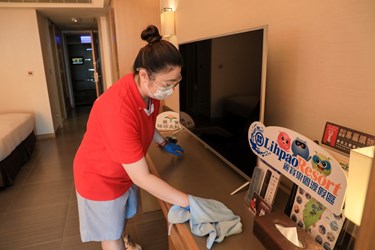 觀旅局說明,新冠疫情警戒雖降至二級,但市府防疫不鬆懈,除持續關心旅宿業者防疫措施外,也鼓勵並輔導旅宿業者取得「安心旅宿」認證標章,只要旅宿業者依照市府防疫SOP做好公共場域、房務及餐飲等各項防疫工作,經市府審核通過即核發認證標章,自去年3月至今已有300多家獲得認證,觀旅局也不定期前往查察,為旅客健康與安全把關。