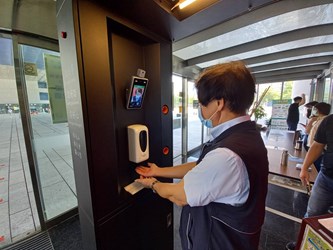 「智慧防疫門」分別裝設於市政大樓文心樓與文心第二辦公大樓門口