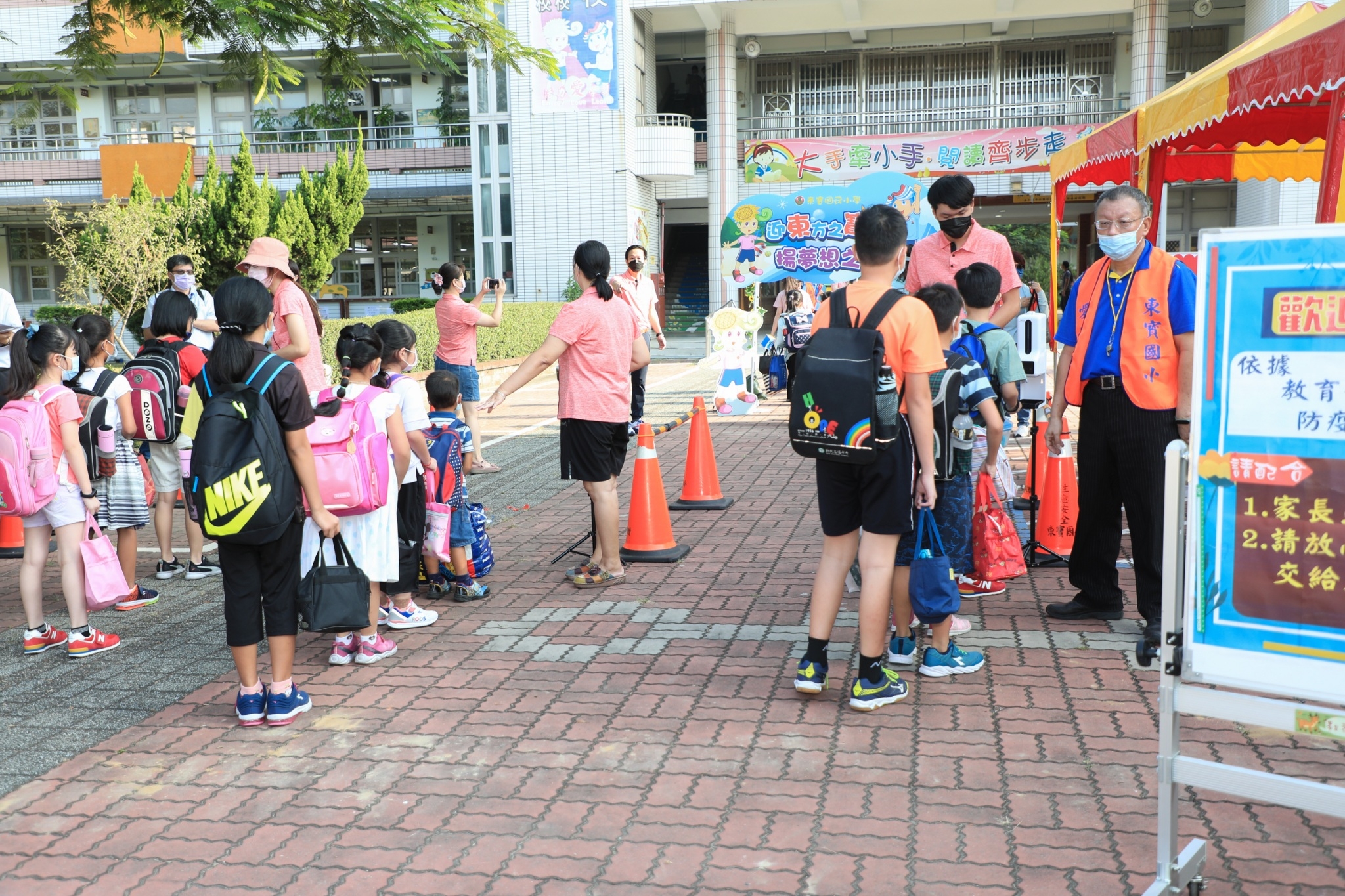 盧市長表示,台中是全國第二大城,全市約有30幾萬名學生今日返校,由於目前仍在疫情警戒二級期間,市府與各校總動員整備防疫措施,事前做好演練及規劃,校園也已完成各項清消工作,並採人潮分流入學,比如東寶國小讓小二生到小六生於740分前入校;幼兒園則於740分至8時間入校;小一生則規劃820分以後上學。