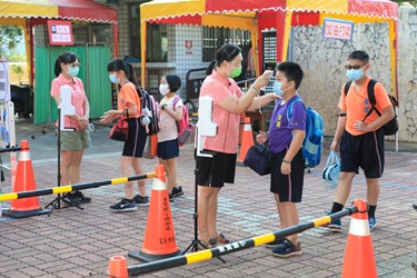 教育局強調,疫情發展不可預期,各校於開學前皆已完成防疫物資整備,教育局及各級學校也已備妥成人醫療口罩2352063個、兒童醫療口罩981850個、額溫槍7826支、耳溫槍1607支、酒精18248公升、乾洗手649公升、漂白水1119瓶及隔板328078份,透過完善的環境消毒及採購防疫物資,讓師生在校安心學習。(9/1*17)*教育局
