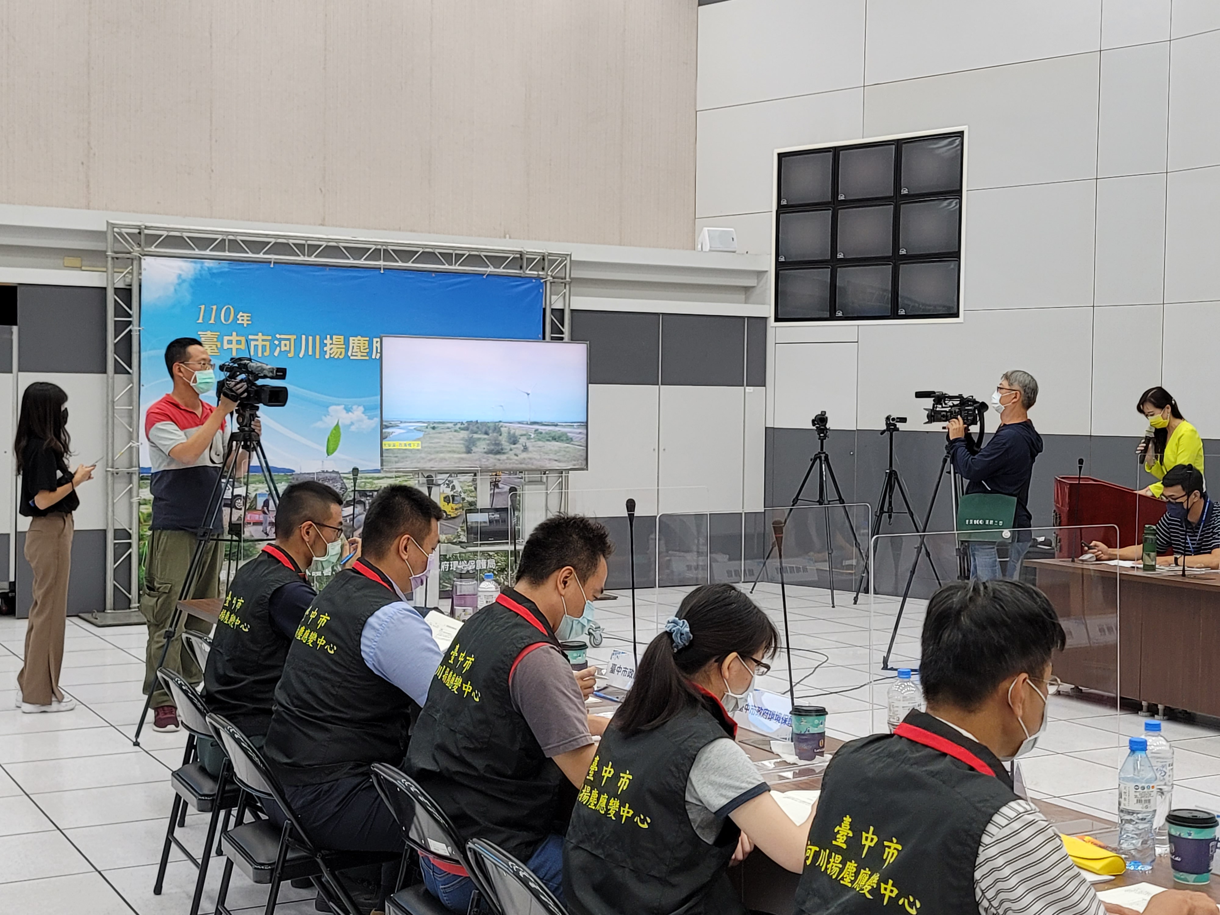 「河川揚塵防護演練」昨(23)日在文心第二市政大樓應變中心展開,儘管適逢防疫期間,演練內容及情境不打折,台中市政府環保局模擬河川揚塵發生期間,44個單位實地應變作為,透過影像紀錄結合預警、輕度、中度及重度應變等級情境同步演出,增加演練臨場感讓各應變單位更加熟悉應變程序,為防範河川揚塵做好準備。
