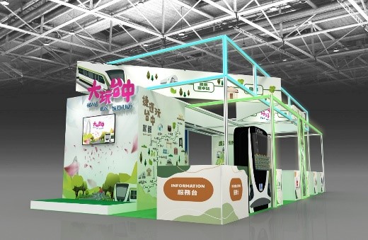觀旅局表示,「台中館」以「綠、白」色調呼應台中清新自然,搭配上方結構塑造捷運行駛意象,呈現沿著捷運軸線可以自在穿梭大玩台中,整體攤位採用開放式結構通透簡約,搭配鮮豔霓虹燈管營造都會風格,展館除規劃觀光相關業者展攤台、舞台區及捷運造型扭蛋區外,還特別與東勢區農會合作,打造獨一無二「阿尼」及「阿梨」兩隻水果小怪獸為主題的拍照打卡區,呈現在地熱情與活力氛圍,象徵台中友善、繁榮、幸福宜居城。