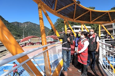 此外,盧市長也至部落廣場魚筌體驗教室視察原民見學聚落平台推動成果暨原民見學體驗,利用五感體驗,進入部落生活,優化部落見學環境,並以泰雅族GAGA的部落互助與共享精神成立合作社組織,打造有別一般觀光模式的部落旅行,引導大小朋友進入部落生活。