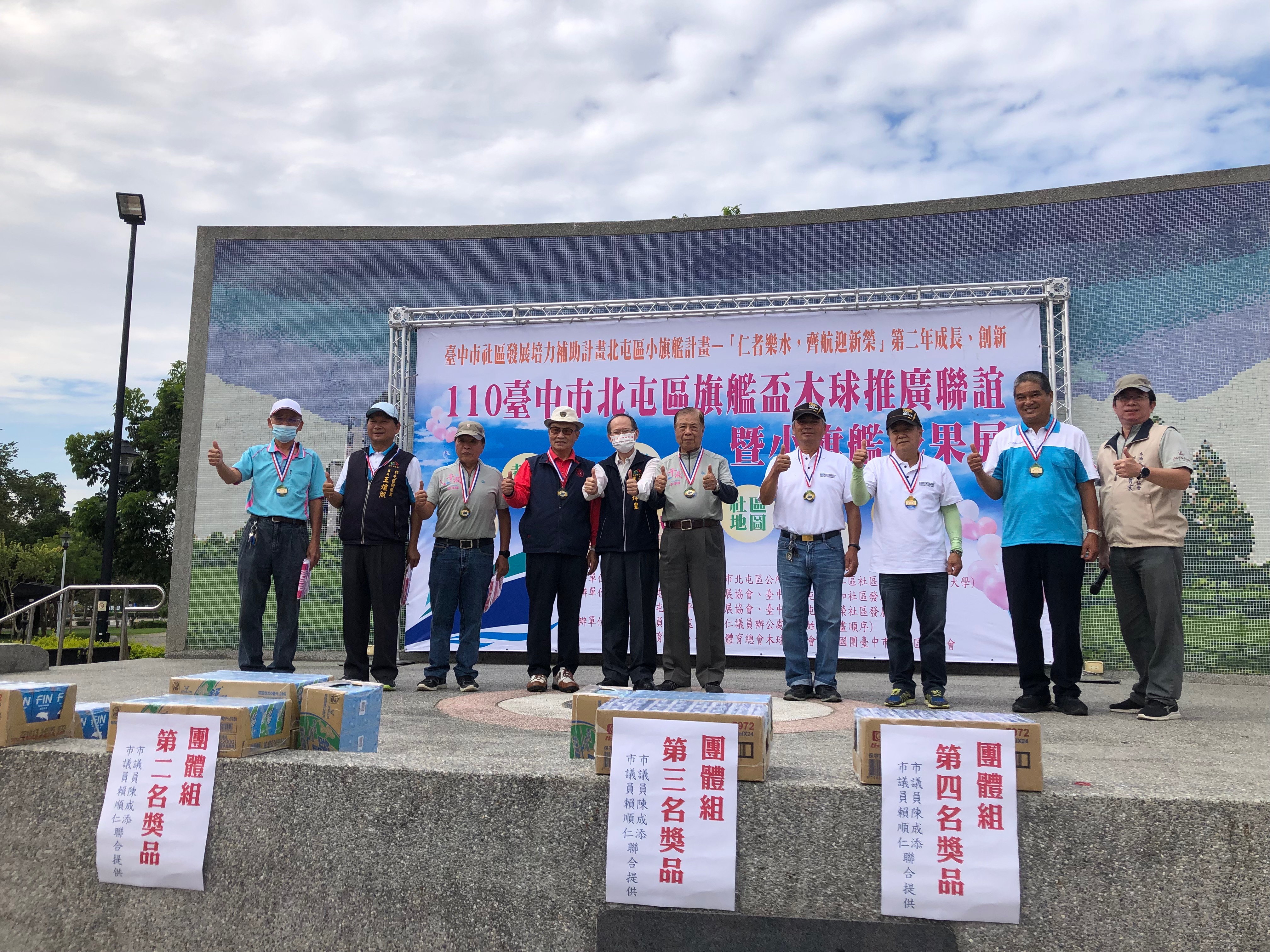 台中市政府社會局與靜宜大學共同輔導北屯區水湳社區發展協會,辦理110年小旗艦計畫「仁者樂水,齊航迎新榮」,由水湳社區擔任領航,仁和、新平及同榮社區為協力夥伴,第二年執行完畢,今(15)日在北屯區新平公園舉辦旗艦盃木球推廣聯誼暨小旗艦成果展,由各社區分享社會福利服務推展過程及成果,也藉由木球聯誼賽凝聚社區夥伴共識。