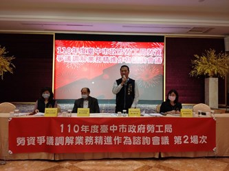 台中市政府勞工局為廣納勞資爭議調解相關建議,邀請勞資爭議調解人及中介團體辦理2場次勞資爭議調解業務諮詢會議,今(15)日舉辦第二場次活動,透過座談方式聽取各方建言,勞工局長張大春表示,盼藉由活動提升台中市勞資爭議調解成功率,維護勞資權益。