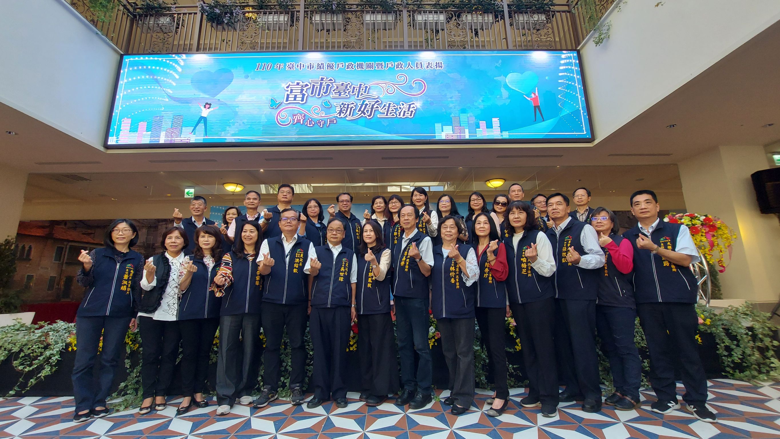 民政局提到,身居第一線戶政同仁堅守崗位,在今年疫情最嚴峻時期積極投入防疫、抗疫工作,協助各疫苗快打站接種服務,一同齊心守護家園,感謝所有戶政同仁為抗疫挺身而出、無私奉獻,也期許大家持續精進專業與市府攜手打拼,讓台中成為更友善、宜居的幸福城市。