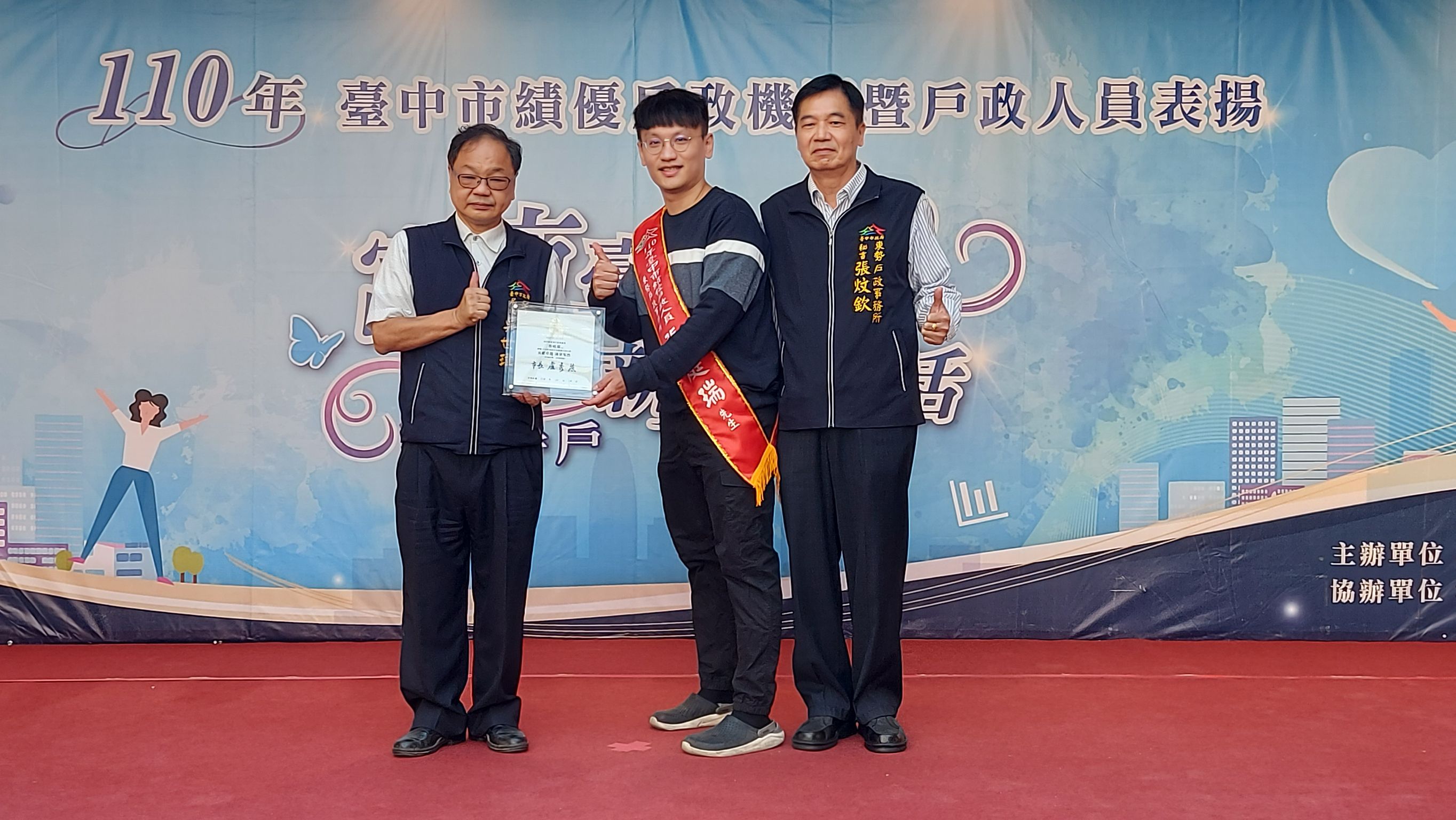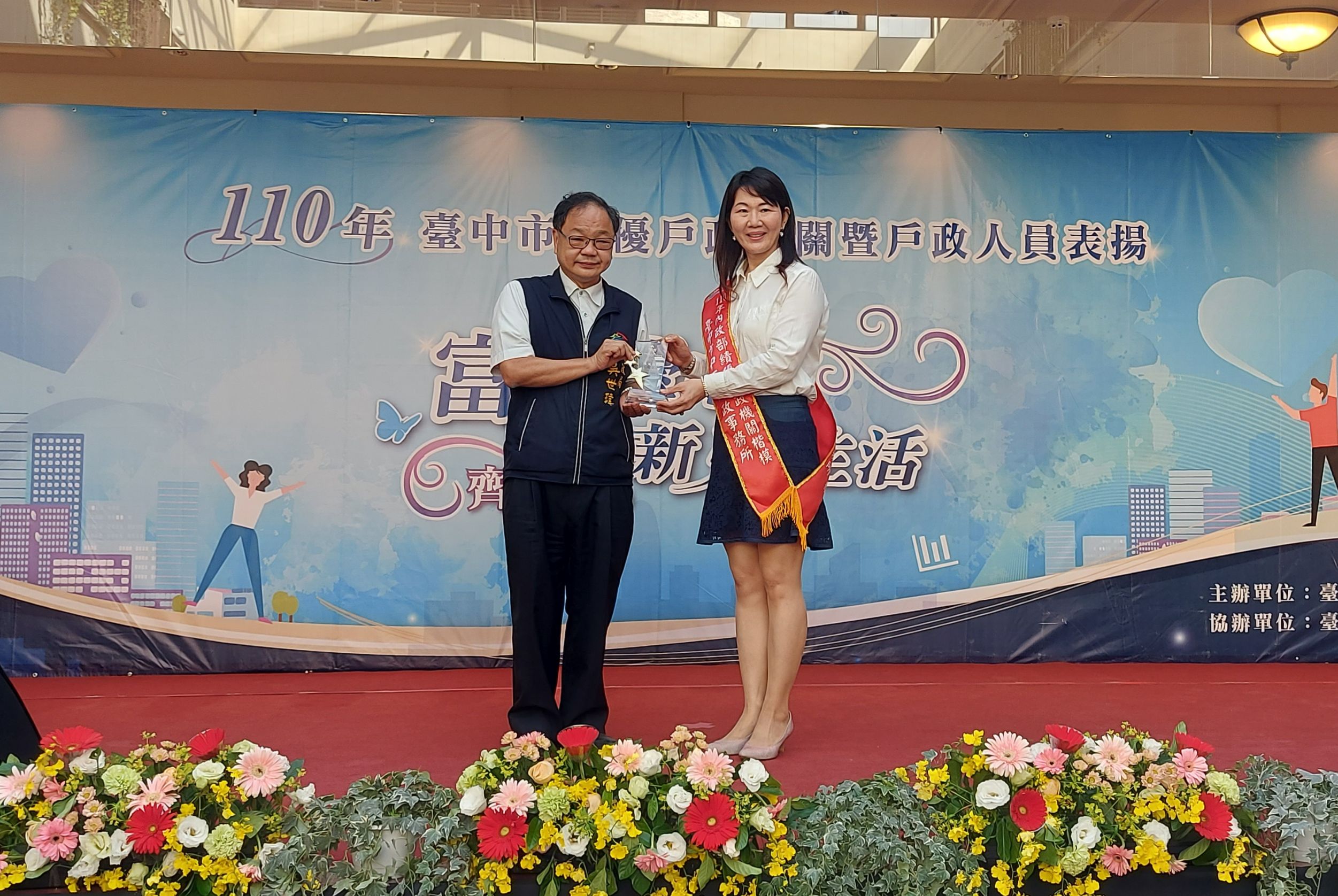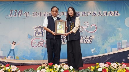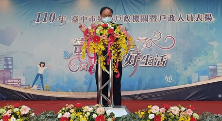 肯定戶政人員優異表現,台中市政府民政局今(19)日在麗寶Outlet Mall舉辦績優戶政機關暨人員表揚活動,除轉頒內政部「110年度績優戶政機關楷模」、「內政部績優戶政人員」,以及長年配合內政部戶役政主機維護作業機關,同時頒發台中市「績優戶政業務評鑑特優機關」及「績優戶政人員」等,共12個機關、35位人員獲獎。