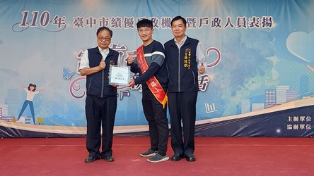 民政局說明,此次中區戶政事務所以多項優質創新服務榮獲「110年內政部績優戶政機關楷模」,而民政局及北屯戶政事務所長年全力配合內政部戶役政資訊系統主機點設施維運作業,今頒獎牌予以肯定。此外,獲獎績優戶政人員中,有長期深耕戶政,提供優質服務資深同仁;還有心思縝密,阻止不法冒領印鑑證明的鷹眼戶籍員,更有不畏艱難、上山下海解除疑難雜症的門牌承辦同仁,各個都是維護人民權益的重要功臣。
