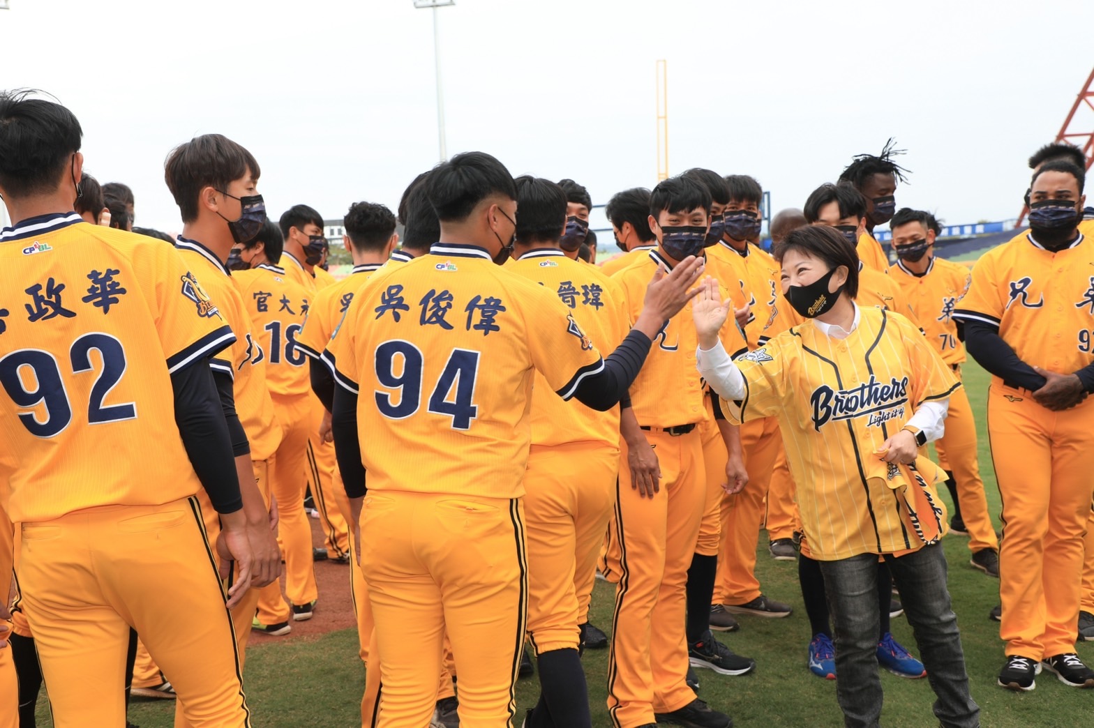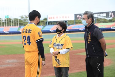 現場媒體詢問盧市長是否比照去年與副總統賴清德打賭冠軍戰,盧市長說,她要想一下,不過最重要的是希望大家專心一致團結起來,幫中信兄弟加油打氣。