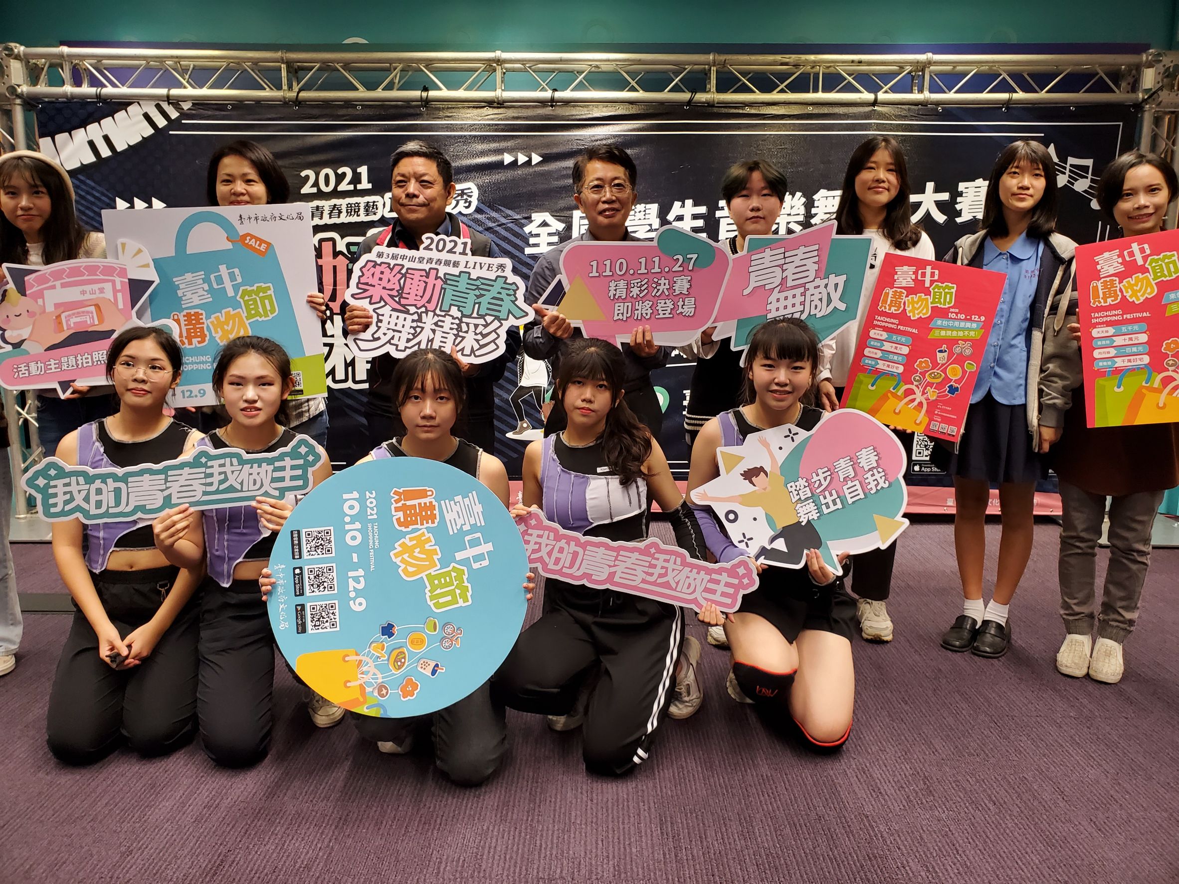 今日活動記者會邀請入圍團隊─衛道高中「VDAY熱舞社」、明道高中「三萬帶回家樂團」帶來精采演出,炒熱氣氛。大墩文化中心表示,決賽當天也將舉辦豐富的周邊活動,下午330分現場特別規劃星光大道,邀請參賽團隊享受星光加持的初體驗,中山堂前廣場並有好玩好逛的手作特色文創市集、拍照打卡送好禮、發送早鳥限量活動專屬紋身貼紙,及限量的炫彩螢光棒。此外,前來欣賞賽事的觀眾還可參加「摸彩活動」,最大獎有iPhone 12、任天堂switchApple AirPods及平板電腦等多項好禮,歡迎市民一起前往體驗這場充滿活力熱情、才華洋溢的青春LIVE!(11/25*17)*文化局