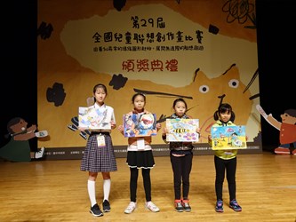 下午的頒獎典禮特別邀請特技空間帶來結合功夫與廚藝的特技饗宴「功夫廚房,上菜了!」揭開序幕,並由文化局副局長曾能汀頒發前三名獎項。決賽評審表示,今年的得獎作品更見創意表現及豐富多元的畫法,其中一年級呂品澄的動物農場,思惟豐富內容多元;二年級王紹齊以少見的馬戲團主題,構圖完整、色調對比及技法成熟,呈現歡樂氣氛;三年級陳玥筑載口罩在海邊玩樂,反映疫情時想要度假玩樂的心理,並以敏銳觀察力細繪影子,感受豔陽的炙熱陽光。