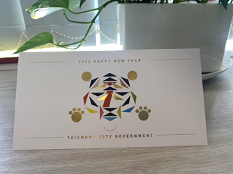 市府秘書處說明,今年盧市長新年賀卡,從信封到卡片的整體設計,特別選用純白色調輔以繽紛色彩提升節日喜氣感,希望收到卡片的同時,除能感受祝福,也能感受到台中的美好。(12/22*16)*秘書處