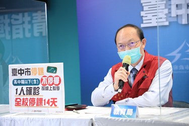 國內本土疫情持續延燒,雖台中市今年至目前為止疫情相對平穩,鑒於明(11)日全市高中以下學校即將開學,市長盧秀燕今日於防疫記者會上宣布,因Omicron新型變異株傳播速度極強,台中市高中職以下各級學校及幼兒園只要有1位師生被中央流行疫情指揮中心列為確定病例,即全校停止實體上課14天,並採線上教學,停課不停學。此外,市府已對全市各級學校共470處場點完成消毒,維護校園安全。