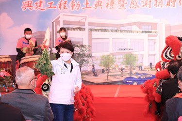「明年中完工!」盧市長說明,瑞城里人口數約14千餘人,是大里區第一大里,原活動中心受921地震影響,結構受損無法使用,致里民多年缺乏公共活動空間,市府團隊積極協助尋覓適宜用地,幾經努力之下,國有財產署同意撥用國有土地,加上市府編列預算及動用第二預備金,今日終於開工,完成地方居民多年心願。