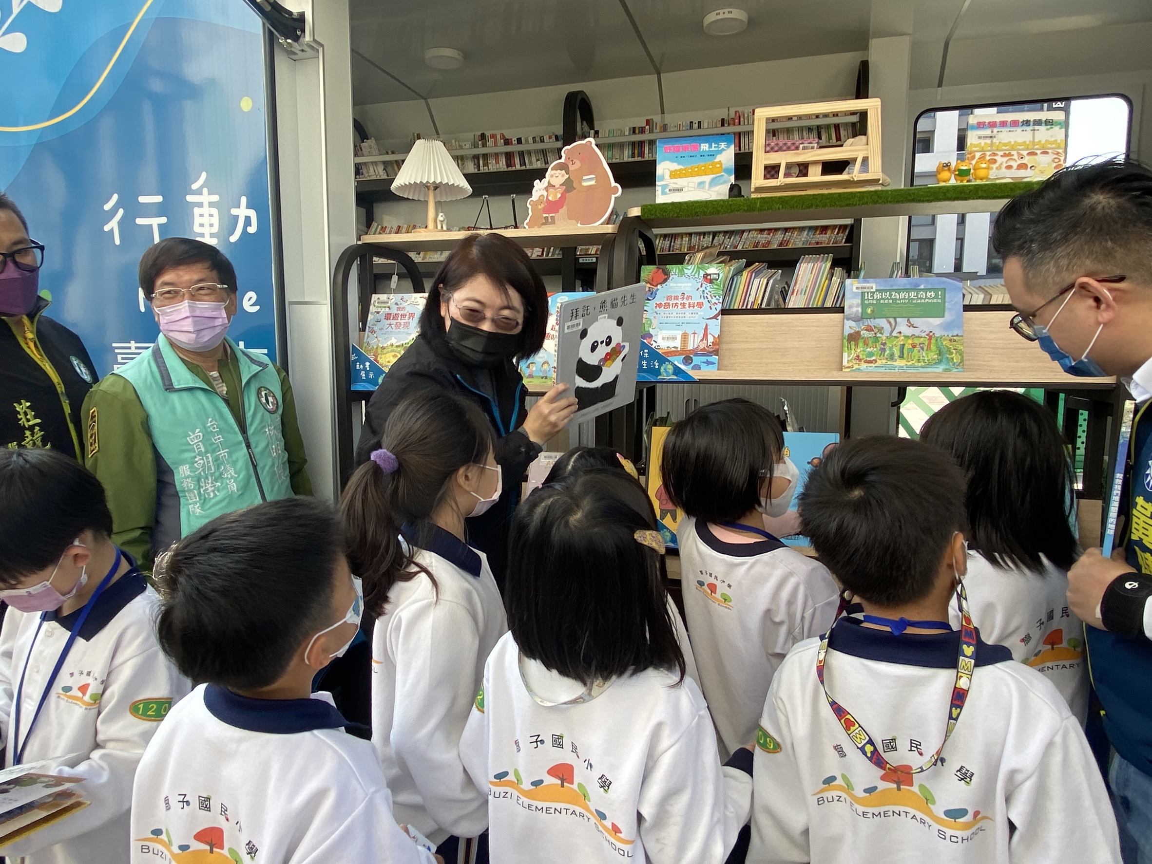 廍子國小校長張榮林表示,現在學校圖書館尚在籌備中,非常感謝文化局大力支持,定期安排行動圖書車到校服務,這部智慧行動圖書車的啟用,提供小朋友豐富的閱讀學習資源,未來也可帶給鄰里及社區民眾更便利的閱讀服務。