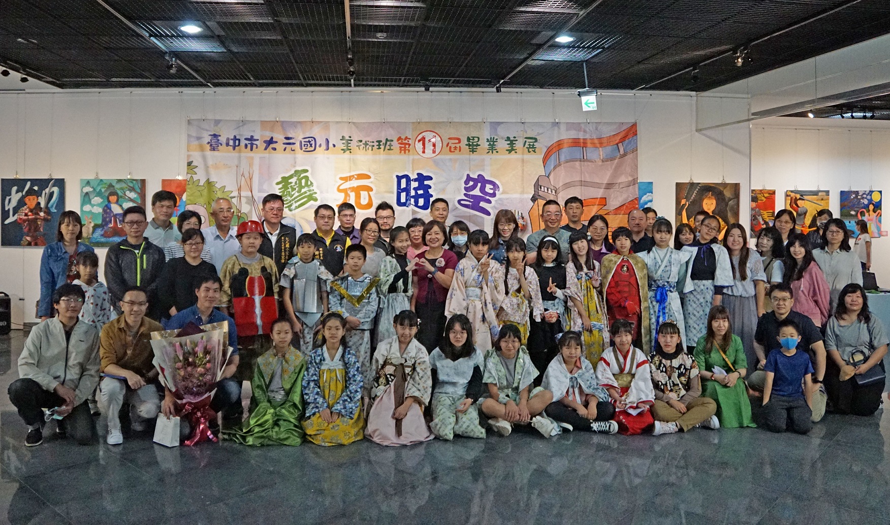 台中市屯區藝文中心今(19)日辦理「台中市大元國小第十一屆美術班畢業美展暨聯展」開幕式,展出應屆美術班畢業生及三、四、五年級在校生的300餘件作品,以多樣的創作媒材表現自由活潑的藝術思維。今日活動由大元國小參展學生盛裝帶來「叢林」演出,為展覽揭開序幕,展期自即日起至4月10日止,歡迎民眾跟著小小藝術家一起遨遊「藝元時空」。
