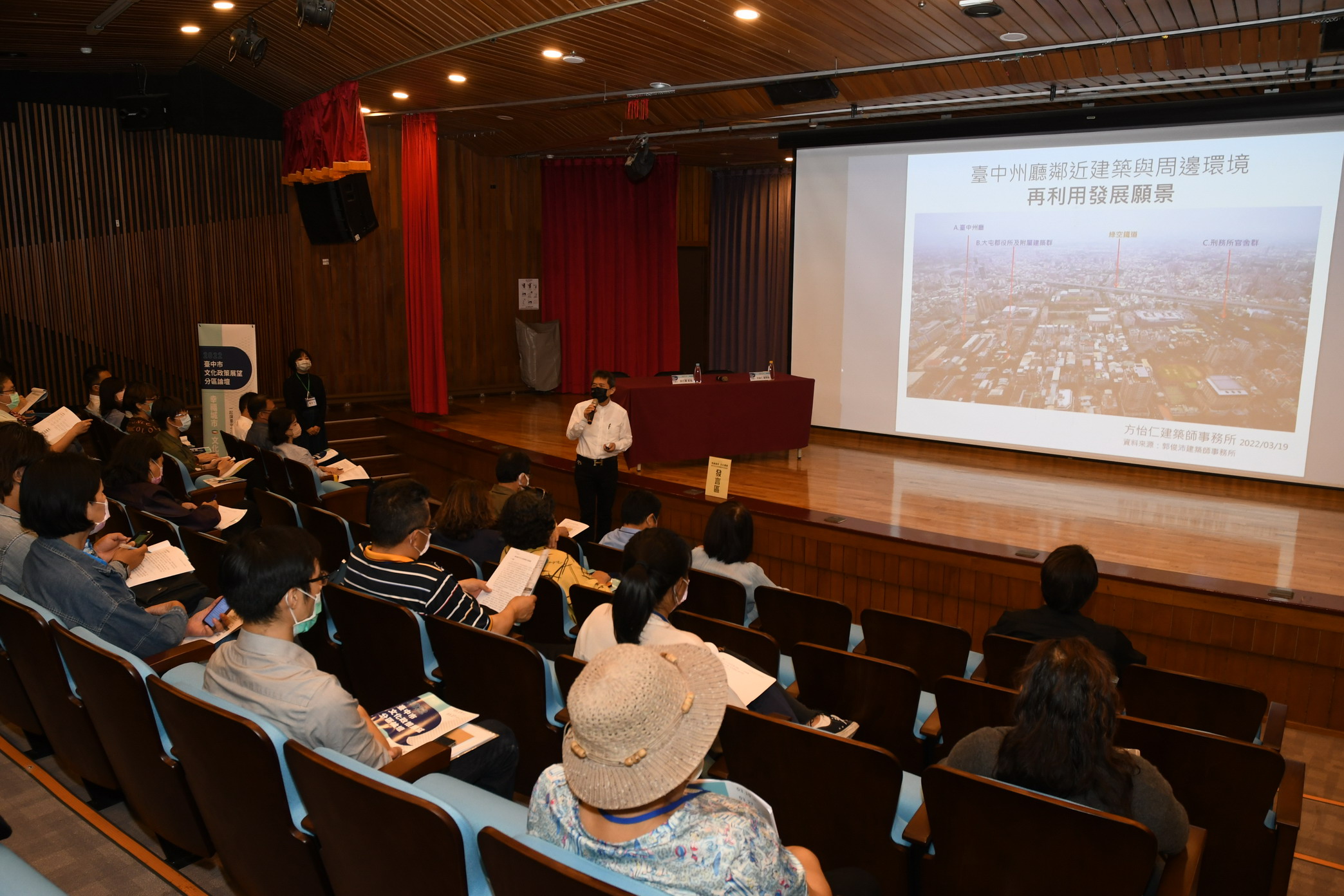 此場引言人同時也是文資審議委員方怡仁建築師也特別強調,「人,才是形塑城市文化最重要的因素。」他以台中州廳、郡役所及周邊古蹟建築聚落的修復計畫為例,台中市中區復興的契機,除了古蹟建築的修復和場域精神的復興外,還需要導入跨局處的資源,以「有趣的台中人」為基調,考量現代城市生活需求進行場所規劃,未來引進多元的產業類型和文化活動,並且從單「點」串連成「線與面」,透過歷史建築活化,體現屬於台中的城市生活美學。