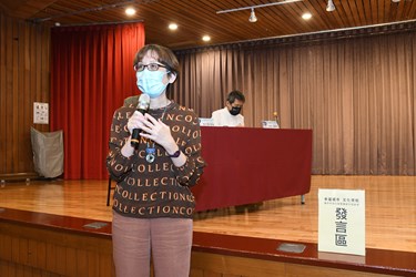 從事社造輔導工作的謝玲蘭老師,在論壇中分享正進行的民生路126巷改造計畫。她說,近年社區自動自發進行巷弄空間的改造,把社區居民生活的場域點、線、面串連,例如從第五市場、台中文學館,沿著柳川漫步到林之助畫室,再到百年校舍台中教育大學,就可見社區街道、聚落在都市變遷下的歷史脈絡,呈現台灣最真實的生活街景,正是市民參與文化空間營造的範例。