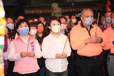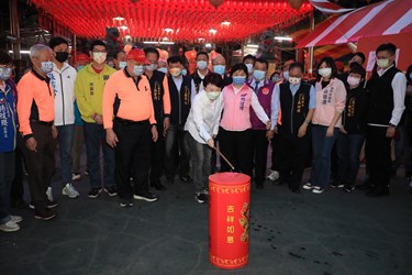 盧市長表示,今日是永興宮三年一次的繞境,是地方一大盛事,因此她親自前來恭迎媽祖起駕遶境,媽祖慈悲、救苦救難,相信三年一科的老四媽遶境可以帶給地方平安順利。她除了感謝永興宮在主委朱宗敏帶領下,在疫情期間籌措此次遶境活動,非常辛苦,也特別祈求媽祖保佑市民平安,祝福永興宮香火鼎盛、信徒滿天下。
