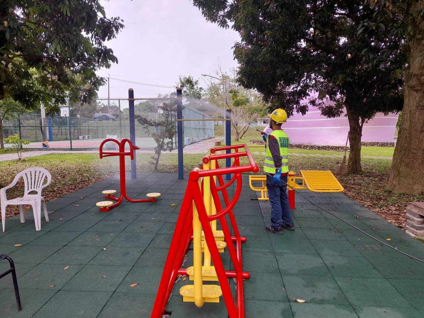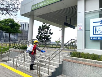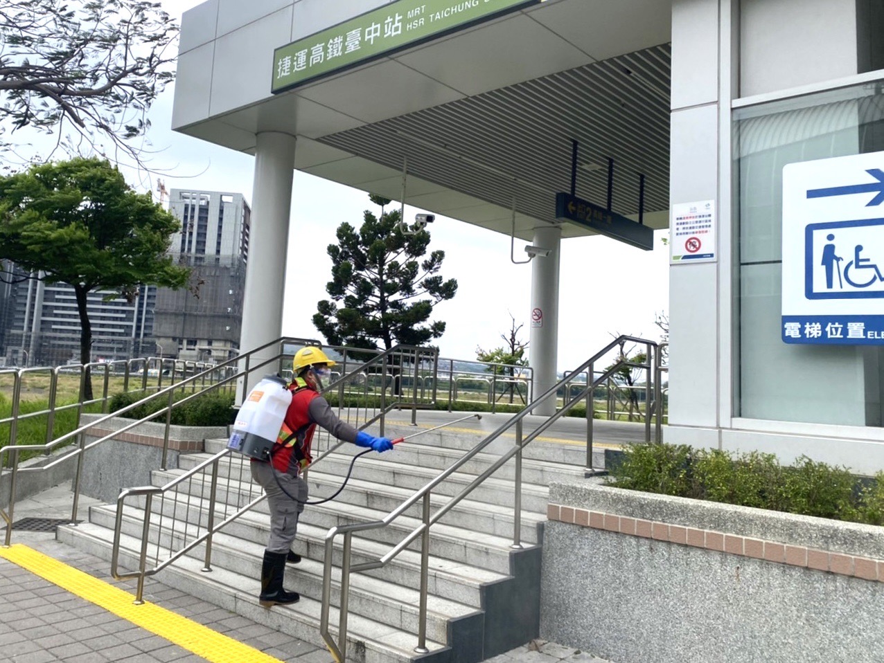 近日本土疫情新增數起案例,社區傳播風險上升,台中市政府環保局為守護市民,「防疫不停歇」,清明連假期間持續針對戶外公共區域環境加強消毒,重點區域包括交通場站、大型營業場所、夜市、商圈、觀光景點、廟宇等地點。同時防疫消毒人員持續站在防疫第一線,一旦接獲確診者足跡點,立即整備機具前往消毒,全力維護市民健康與安全,降低傳染風險。
