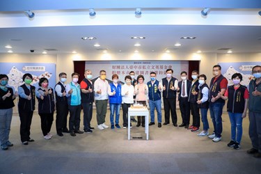 今日捐贈儀式,盧市長、文英基金會代表林玫卿律師、文化局長陳佳君、教育局副局長葉俊傑、市議員沈佑蓮、黃健豪、陳成添、台中市立圖書館長張曉玲、廍子國小校長張榮林、北屯區長歐陽明及北屯區多位里長共同出席外,市議員曾朝榮服務處代表也到場見證。(4/7*7)*文化局