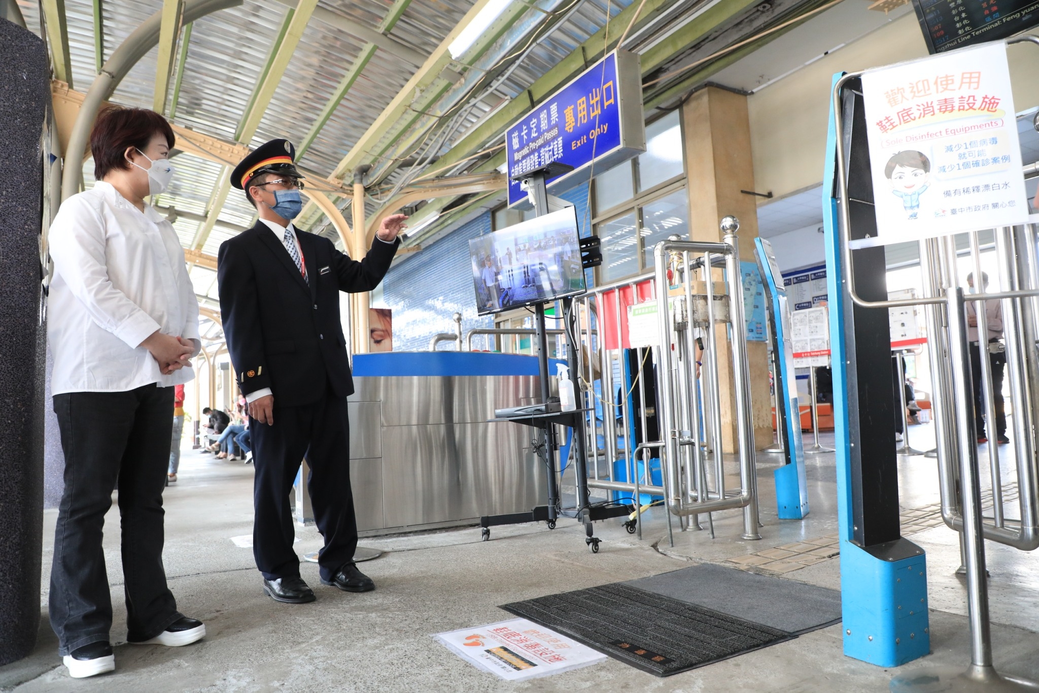 今早盧市長在交通局長葉昭甫、民政局長吳世瑋、新聞局長鄭照新陪同下到大甲火車站及大甲鎮瀾宮視察防疫情形。盧市長說,目前全國疫情嚴峻,台灣農曆3月瘋媽祖,台中市已有4間宮廟繞境,而今晚將舉行的大甲鎮瀾宮規模最大,民眾須注射3劑才能參加繞境,目前已有超過10萬信徒領有3OK卡;另中央提供台灣社交距離APP,若有相關疫情會顯示資訊提高大家警覺,希望信徒遵守防疫規定、下載使用APP,希望今年大甲媽繞境順利。