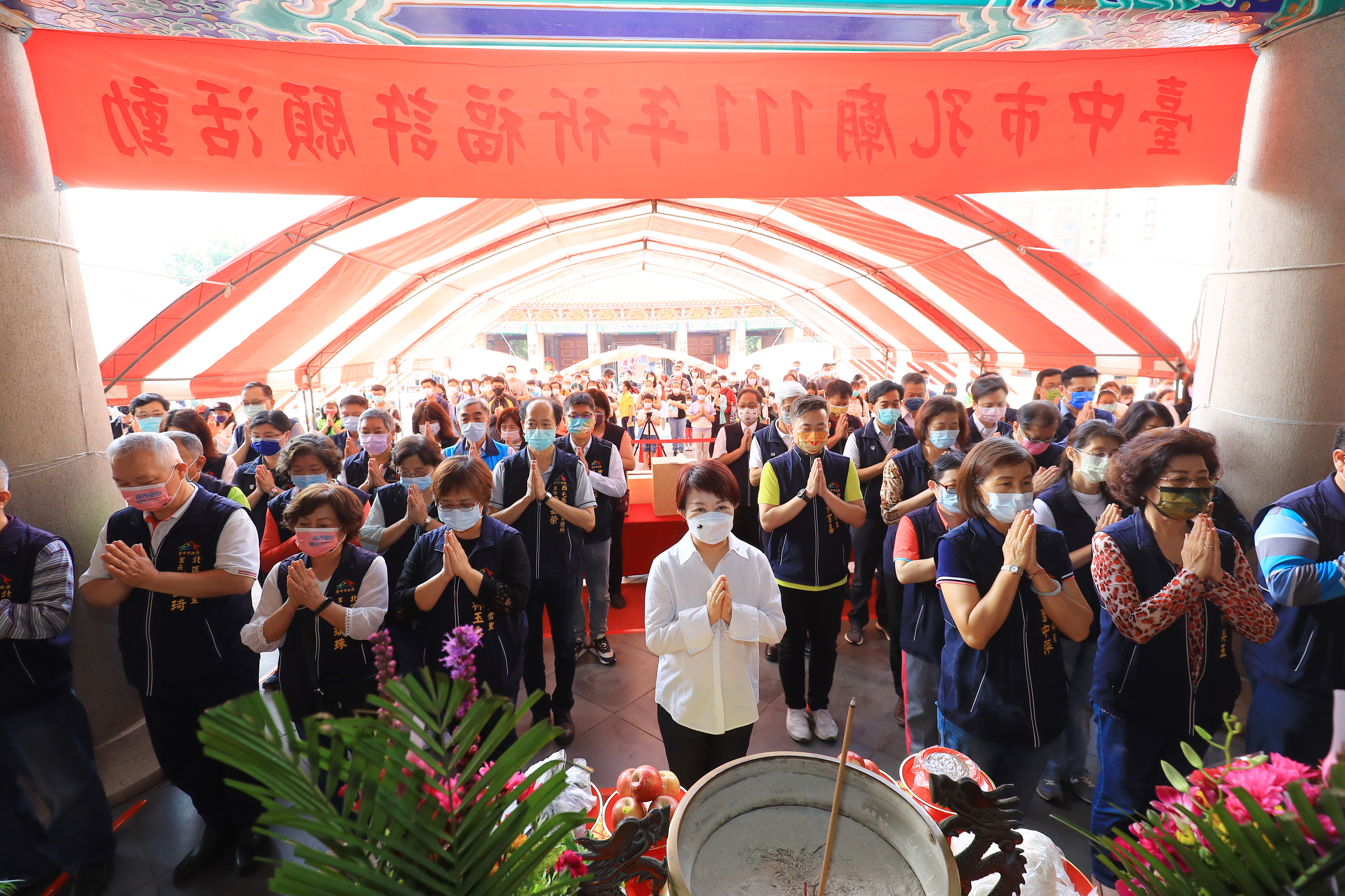 台中市孔廟今年第一場祈福許願活動「福虎昇豐、高中狀元」,今(9)日在大成殿前廣場登場,由市長盧秀燕擔任主祭官,依循古禮帶領所有參加者,向先師暨先聖、先賢敬拜,進行隆重的祈福許願儀式,祈求應試順利、智慧開。盧市長表示,期盼參加祈福的民眾在先師的護佑下,好運連連、吉祥如意,面對考試旗開得勝,完成人生的志向與目標。