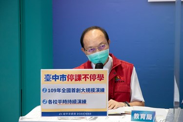 楊局長指出,為達「停課不停學」,教育局早已超前部署,對於師生線上學習能力培養、線上教學課程的規劃及輔導,以及支援經濟弱勢學生居家線上教學設備平時就有準備,至於平時也依教育部指引,督導學校定期以每月實施1次,或每學期實施3至4次為原則,台中市先前幾所停課學校及班級也已經啟動線上教學,教育局也同步協助整備學生居家線上學習所需資源。