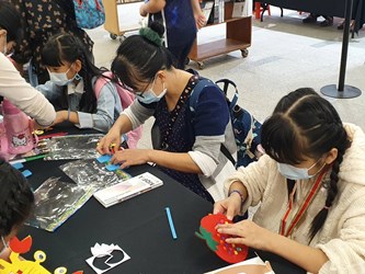 文化局指出,台中市纖維工藝博物館今天也應國立公共資訊圖書館邀請,參與「2022年世界閱讀日-閱讀尋寶王」系列活動, 在「世界閱讀日市集」現場設置攤位,帶領民眾學習「不織布簡易編織」,不少小朋友好奇參加手作體驗。現場同時展出纖博館最近出版的《臺灣纖維植物編織工藝研究》、《大地之華~臺灣天然染色事典》和相關主題專書,希望民眾透過有趣的手作體驗,對纖維和染織工藝知識產生興趣。