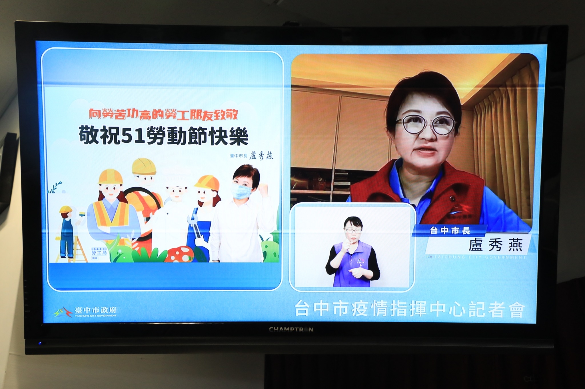 全國今(1)日本土確診新增1萬6936例,台中市本土個案新增816例,包含校園群聚74例、職場群聚74例、家庭朋友群聚118例,其中,逢甲大學新增7例、累計123例。市長盧秀燕今日持續透過遠端視訊主持防疫記者會,她特別感謝五一勞動節醫療照護、環保清消、救護後送、檢疫替代所(防疫旅館)的工作人員仍辛勞付出,堅守城市防疫第一線。