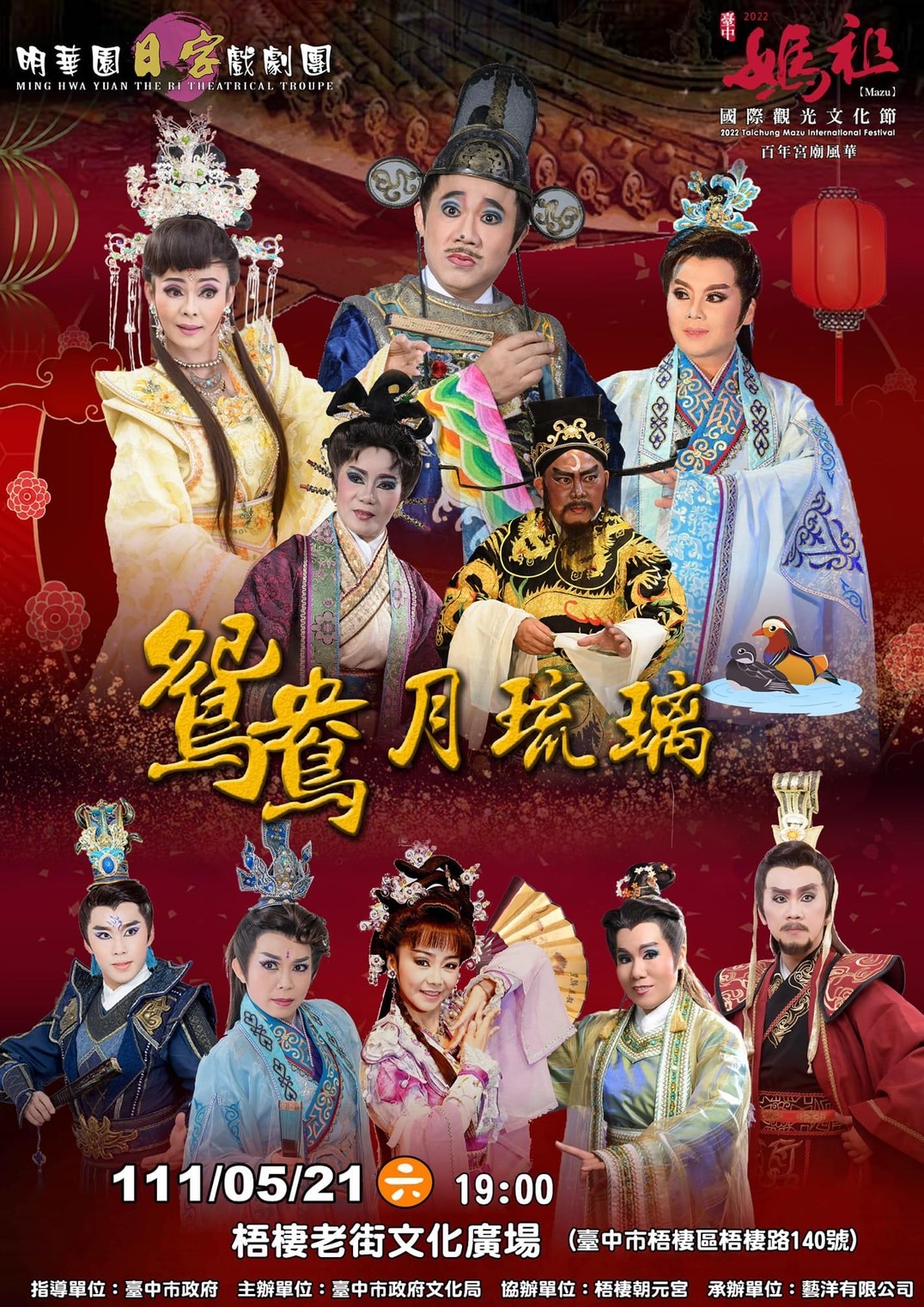 明華園日字戲劇團精采大戲「鴛鴦.月琉璃」今(21)晚7時將在梧棲朝元宮盛大演出