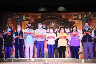 盧市長表示,爲慶祝台中市媽祖文化節,台中市政府在各地舉行相關藝文活動,今天在梧棲朝元宮邀請到全國著名的明華園劇團演出,希望疫情期間讓民眾放鬆心情,也藉此宣導民眾落實防疫,地方一切平安。