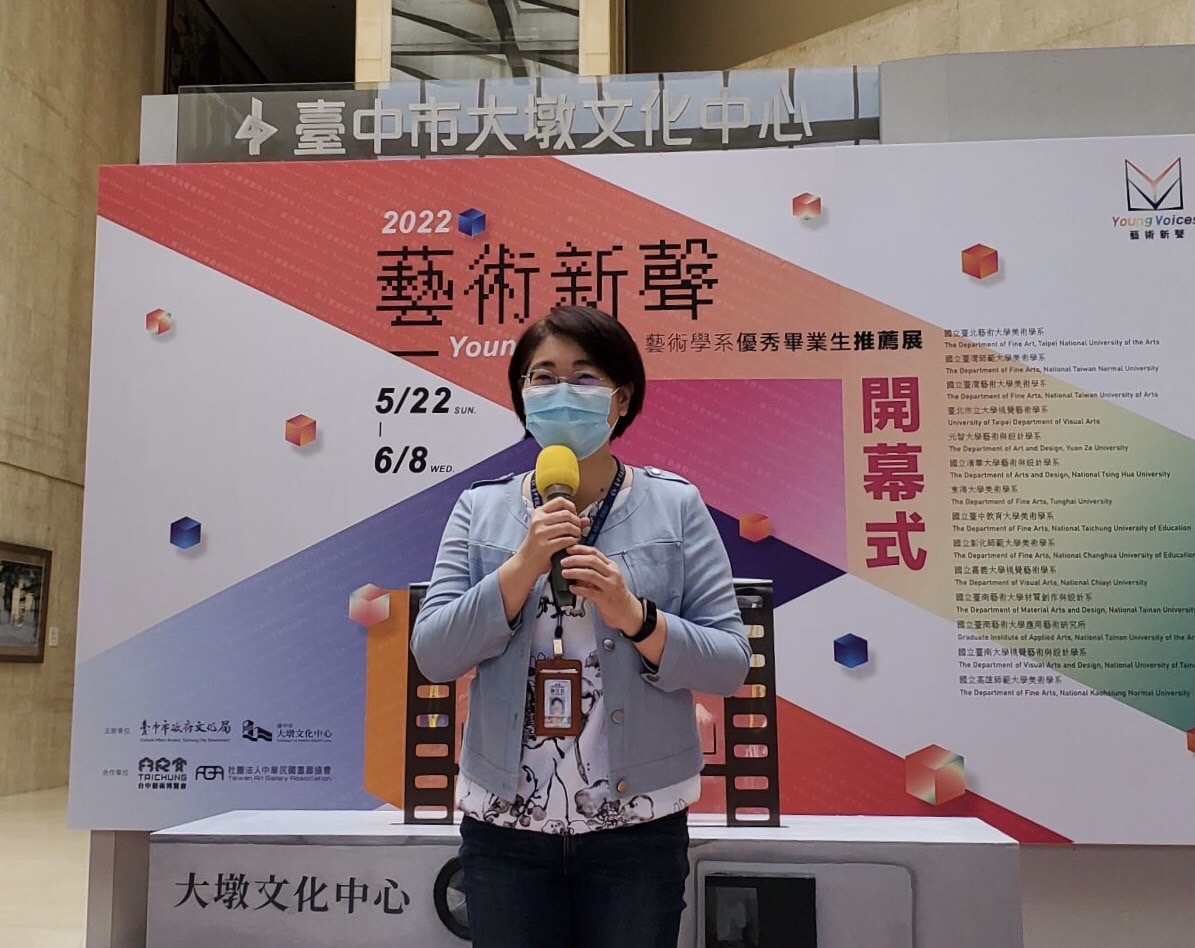 文化局長陳佳君代表市長盧秀燕出席開幕式時表示,盧市長上任以來重視文化施政,各項軟硬體積極並進。「藝術新聲」今年已邁入第九年,是全國唯一辦理的藝術系所畢業生精選作品展覽,藉由公部門、學術界及產業界攜手合作,為全國藝術新秀搭起展演平台,讓台灣當代藝術最有活力的新生代在台中匯聚,為台中累積更加豐沛的藝術能量。隨著綠美圖新建工程於日前完成上梁,未來台中市將擁有一座國際級的藝術舞台,為藝術家提供更好的展示空間。