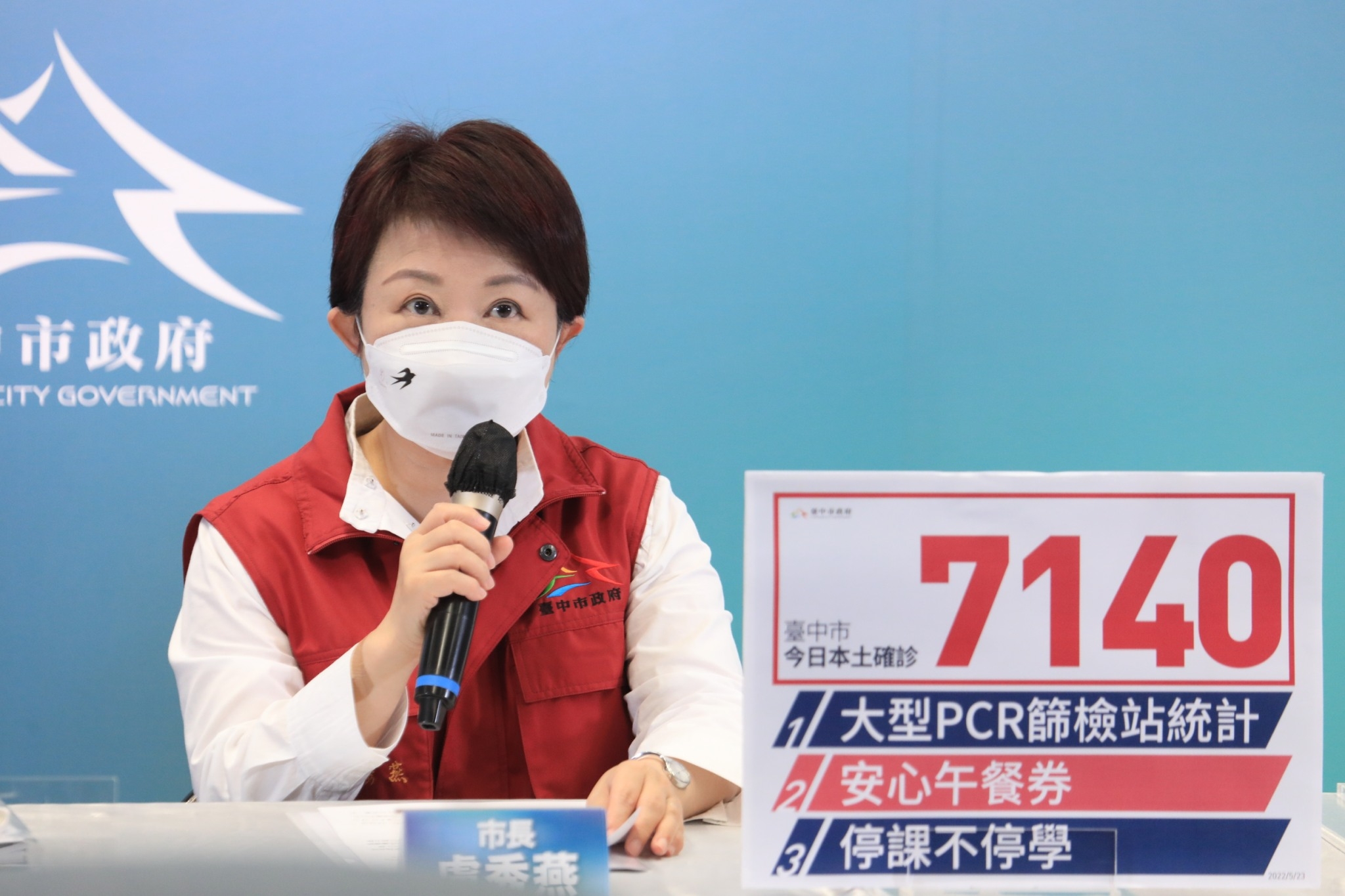 全國今(23)日本土確診新增6萬6247例,台中市本土個案新增7140例。市長盧秀燕今日於防疫線上記者會表示,全國案例數比昨日少許多,可能是假日效應,所以整體數據減少,提醒大家仍不要掉以輕心,戴好口罩,保持社交距離,落實防疫措施。