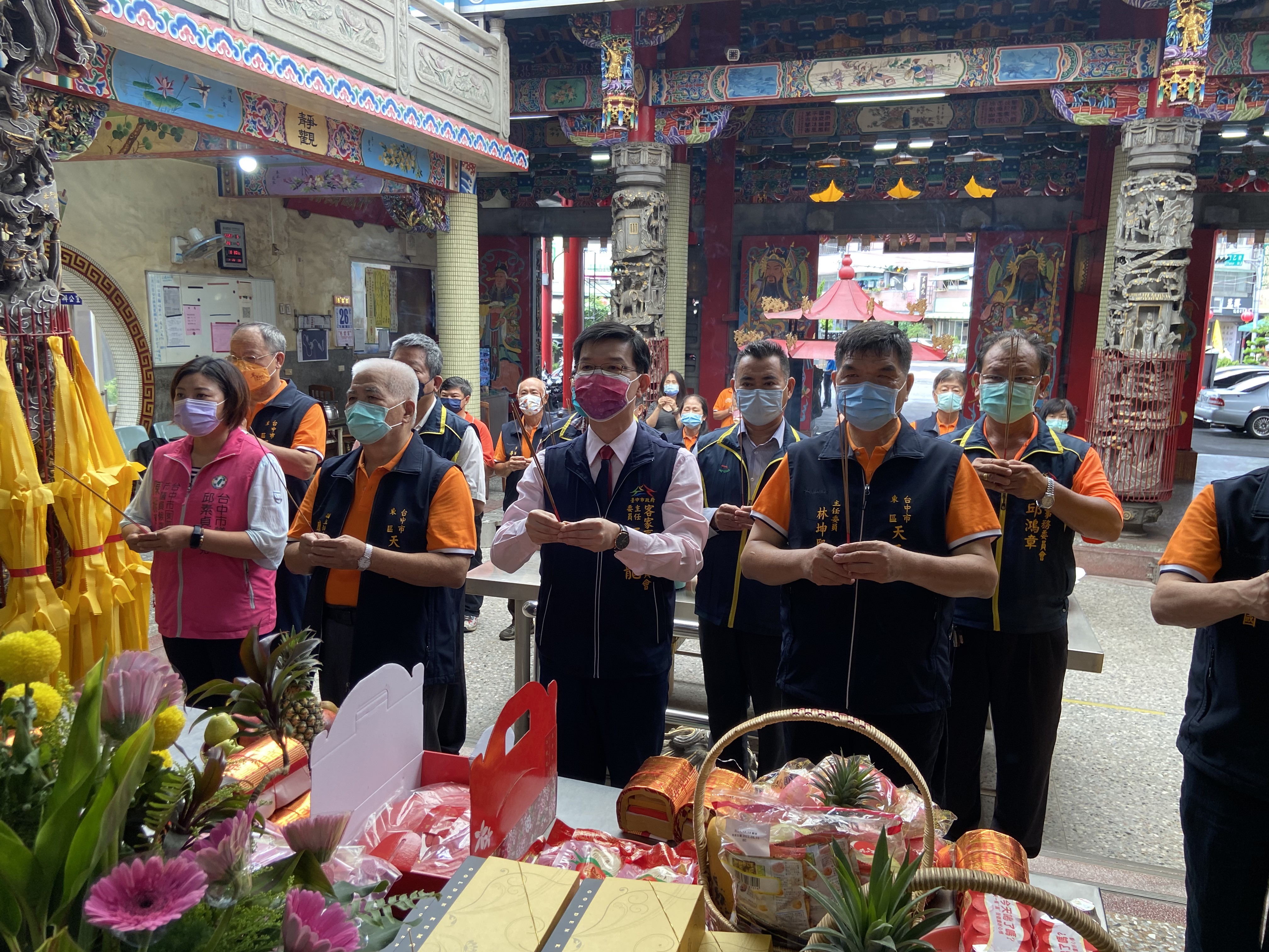 客家重要信仰神祇「五穀爺」(即「神農大帝」) 今(26)日聖誕,台中市政府客委會主委江俊龍代表市長盧秀燕,致贈花籃給台中市西區興農宮、大里區神農殿、東區國農宮、天乙宮及霧峰區聖賢宮、福成宮等,除向神農大帝祝壽外,也到東區天乙宮參與壽慶團拜活動。