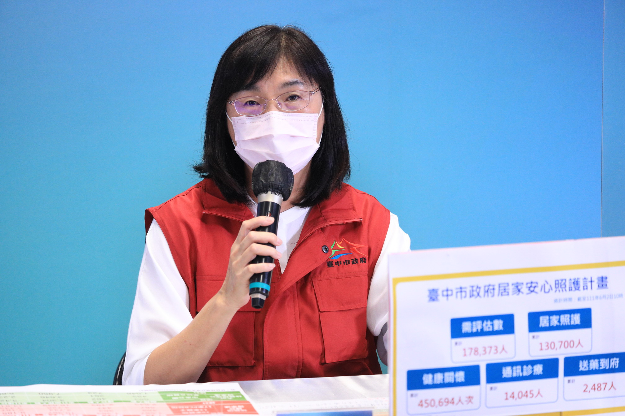邱副局長表示,累計至今日上午,共17萬8,373位民眾申請居家照護評估,其中13萬700位已收案,健康關懷累計達45萬694次,另透過「通訊診療」的居家照護者有1萬4045人,並已提供2487人居家照護者「送藥到府」,市府會持續妥善照顧每位確診者。(6/2*15)*台中市政府