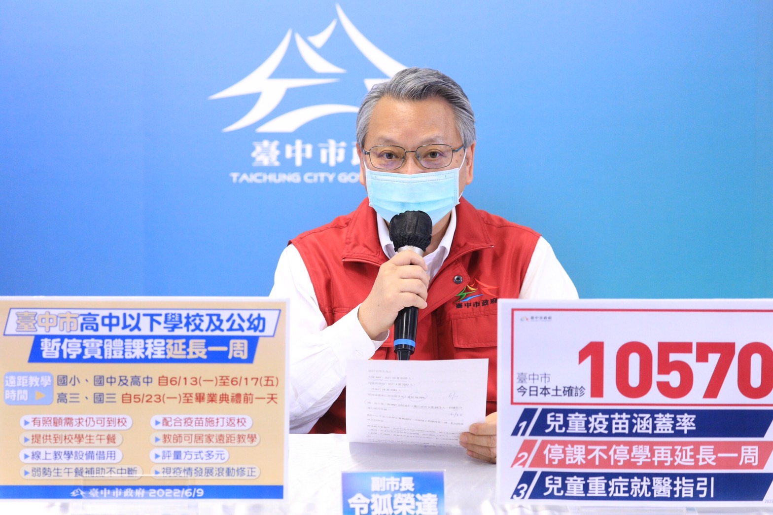 令狐副市長表示,台中目前在疫情的高原期,單日確診數仍有一萬例,加上昨天市長盧秀燕也有以曲線圖、統計圖跟大家報告,「改採線上教學」的措施對避免孩童在校群聚而確診,有一定程度的幫助。市府也諮詢幾個台中市的家長團體意見,考量學生健康優先,決定從6月13至17日止,高中以下至公幼仍暫停實體課程,國小以上改採線上教學,私幼與家長溝通後自行決定,後續將視疫情發展再滾動檢討。