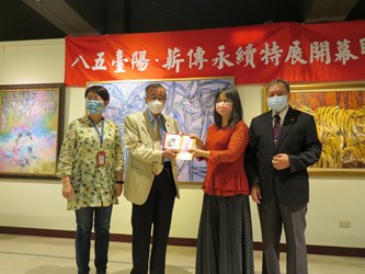 今日開幕式,文化局長陳佳君、前總統府秘書長廖了以、台陽美術協會理事長吳隆榮、維他露基金會執行長侯至祥、台中扶輪社社長吳傳福,以及倪朝龍、簡嘉助、廖本生、謝棟樑、張淑美和袁國浩等多位知名藝術家均到場共襄盛舉。(6/11*12)*文化局
