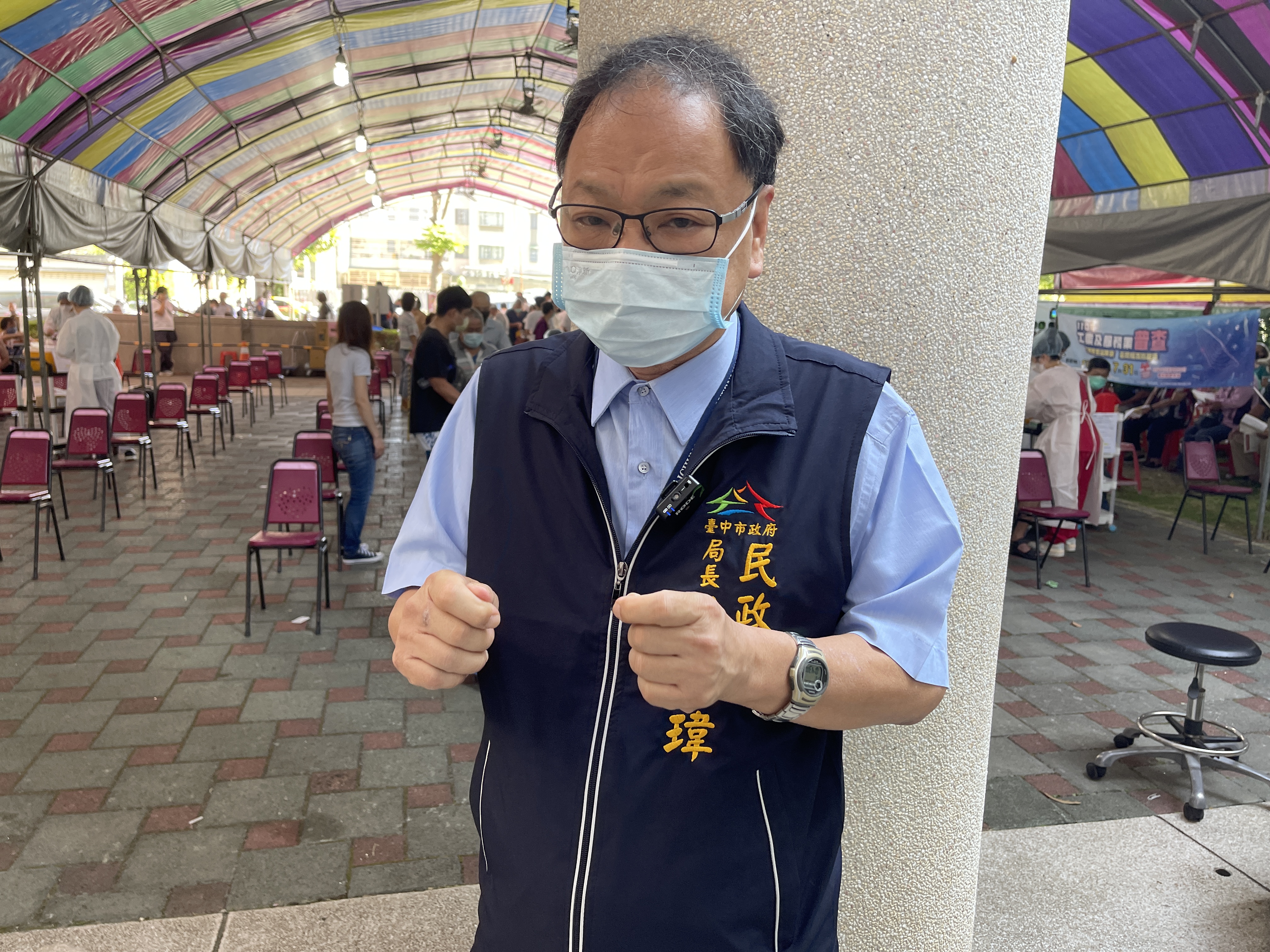吳局長指出,為確保人員分流及維持舒適的施打環境,市府要求各快打站指揮官再度審視排隊動線;調整等候區在有遮蔽的陰涼處,或增設遮陽棚、水冷機等應變措施,避免民眾烈日下久候造成身體不適;增派醫護人員加速施打作業;派員協助維持報到及獎勵品換發秩序;並隨時向排隊民眾解說施打情形,減少民眾等候疑慮,市府即時應變、優化服務,就是希望接種環境更便利舒適。