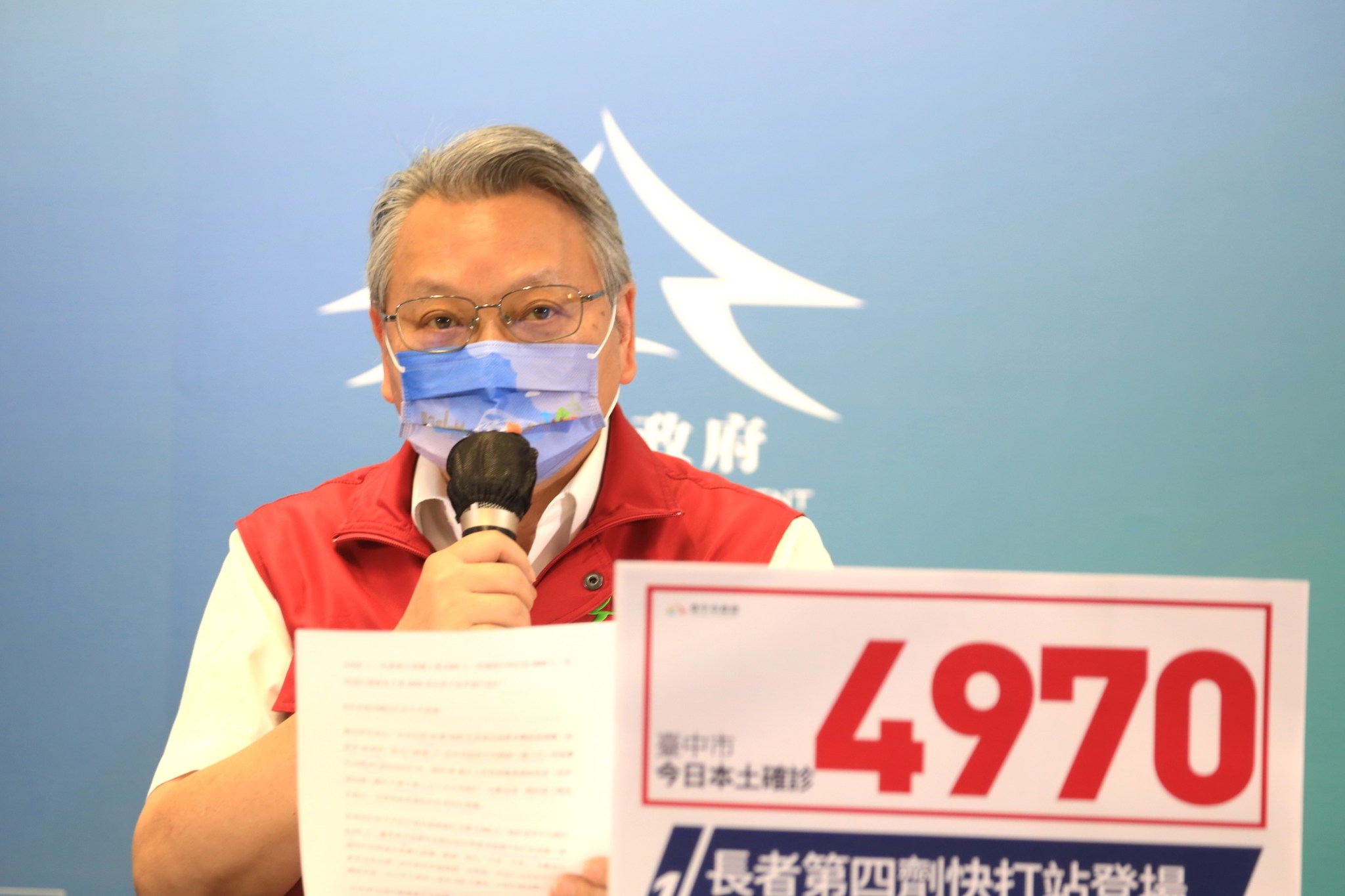 全國今(5)日新增3萬5,914例本土個案,台中市新增4,970例本土個案,其中4,773例為快篩陽確診,占96.04%,相較上周二(6月28日)6,397例,下降22.31%。副市長令狐榮達表示,台中已有15萬1,525位長者完成第四劑疫苗接種,涵蓋率36.81%,排名六都第一;市府自今日起一連三天,再度優化加開47站疫苗快打站,提供65歲以上長者及55歲以上原住民接種疫苗,目前快打站動線順暢,長輩幾乎不用排隊,隨到隨打,反應都很好。