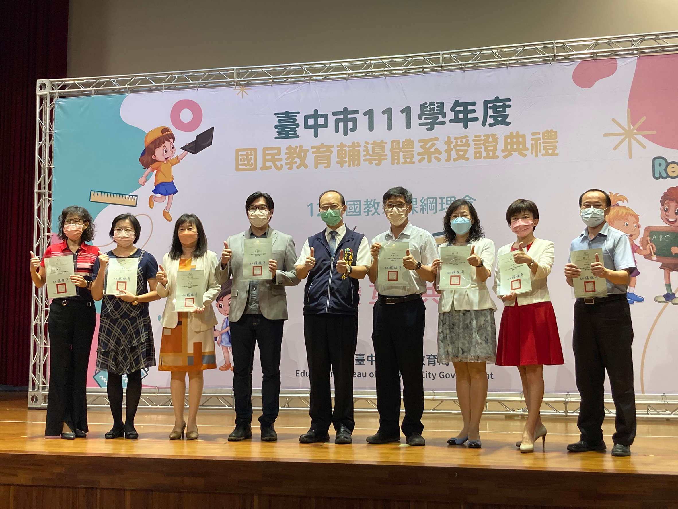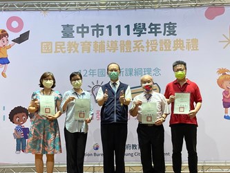 台中市政府教育局今(7)日在慈明高中舉辦111學年度「國民教育輔導體系」輔導員授證典禮,共計400多位優秀教師參與授證,未來將深入校園為全市教師提供服務,協助教師專業成長,並在7月推出持續出版《素養導向教學設計參考手冊(第四冊)》,提供教師精進教學的參考,共同打造台中市校園好師資、好課程。