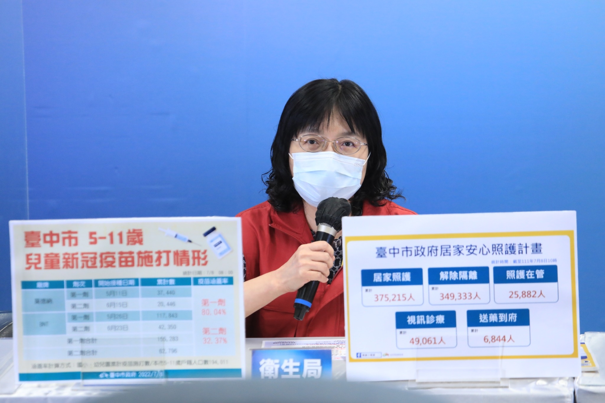令狐副市長表示,統計至昨日止,台中5至11歲兒童疫苗第一劑共施打15萬5,283人,第一劑疫苗涵蓋率80.04%;第二劑共施打6萬2,796人,第二劑疫苗涵蓋率32.37%。依照可接種日期推算,第二劑兒童莫德納疫苗可施打人數有3萬7,169人,實際接種率55%;第二劑兒童BNT疫苗可施打人數10萬5,895人,接種率40%,目前台中校園集中接種持續進行中,若家長有其他考量尚未讓孩子接種,也可自行向合約醫療院所預約,市府會滾動評估未來是否加開第三波兒童BNT快打站。
