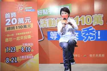 台中購物節今年邁向第四年,首度邀請全國民眾為購物節秀出好點子,成為全台最接地氣的購物節。市長盧秀燕今(23)日出席宣傳記者會,宣布「台中購物節 等你來秀」創意提案徵選活動正式起跑,總獎金110萬元,即日起至8月10日受理網路報名,徵件提案前10名每名將獲得10萬元台中購物金,首獎再加碼10萬元,你的創意讓台中購物節幫你買單。
