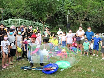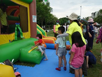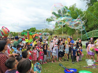 台中市霧峰區公所今(6)日於阿罩霧公園舉辦「FUN暑假 玩一夏」親子趣味闖關暨藝文饗宴活動,規劃多項親子闖關活動,還有精采戰鼓表演、泡泡秀及氣墊遊戲,吸引親子互動體驗,歡度炎夏時光。民政局長吳世瑋代表市長盧秀燕出席表示,疫情逐漸平緩,民眾因此能逐漸恢復正常生活,感謝大家努力配合防疫,市府也會持續規劃具地方特色的藝文活動,讓民眾在暑假期間享受難得的親子時光。