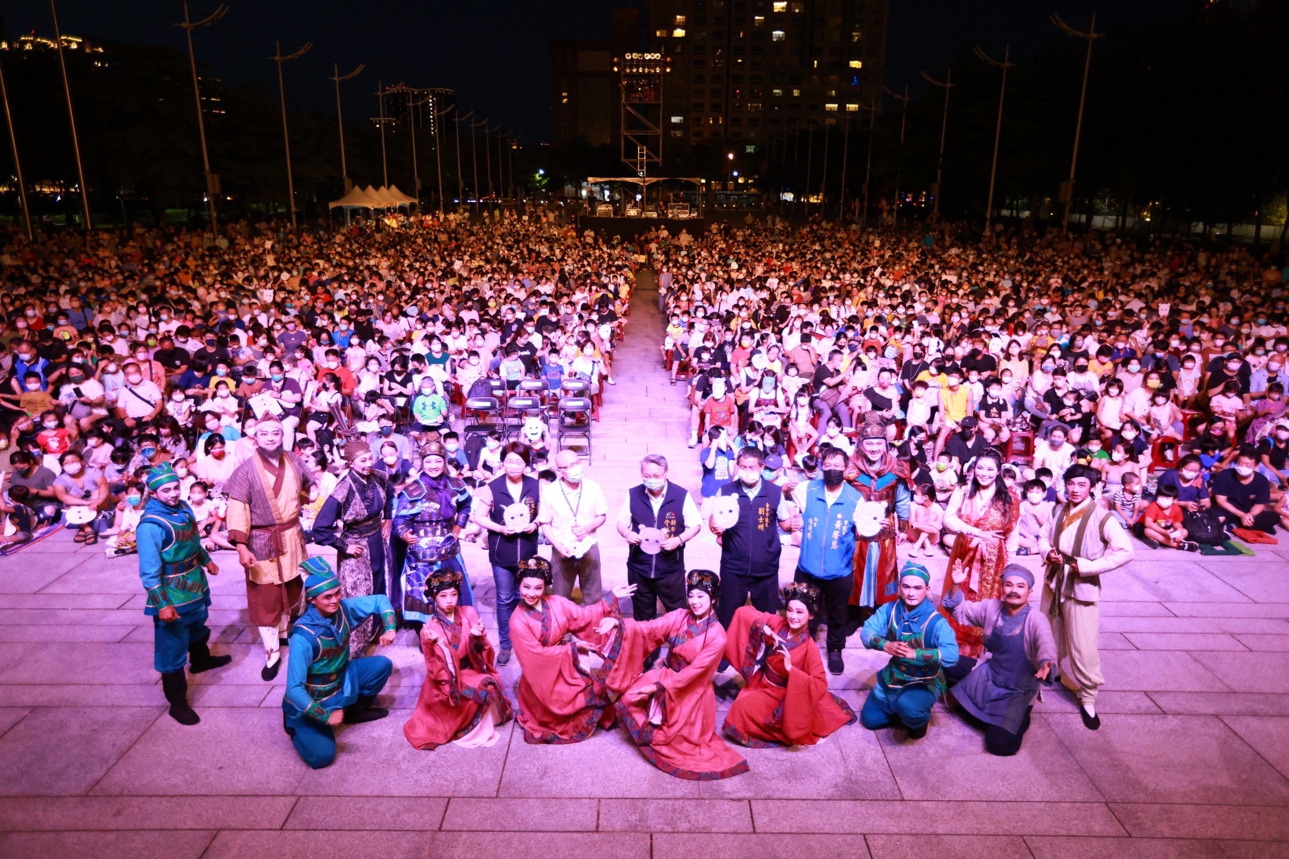 台中市政府文化局邀請備受大小朋友喜愛的紙風車劇團,帶來台灣漫畫英雄《諸葛四郎》陪你過暑假!昨(6)晚在市府前廣場演出《諸葛四郎》兒童劇。現場來了超過6,000位的大朋友小朋友,與演員們一起共度父親節假期。這部改編自台灣經典漫畫英雄串起三代情的精采故事,以現代動漫造型結合古裝人物,並融合多種表演元素,高潮迭起。