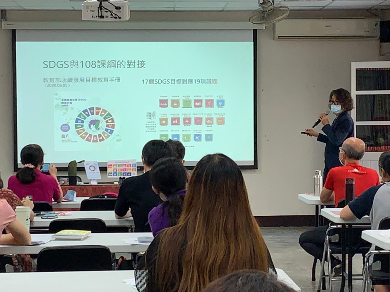 針對班級經營,楊局長指出,聯合國永續發展目標(SDGs)已成全球共同課題,盧市長更以「幸福永續、富市台中」為施政願景,因此教研中心今年首度推出「Let SDGs Open Our Eyes-立足班級,撐起我們的世界」主題課程,聚焦SDGs中的目標6淨水與衛生、12責任消費與生產及13氣候行動。