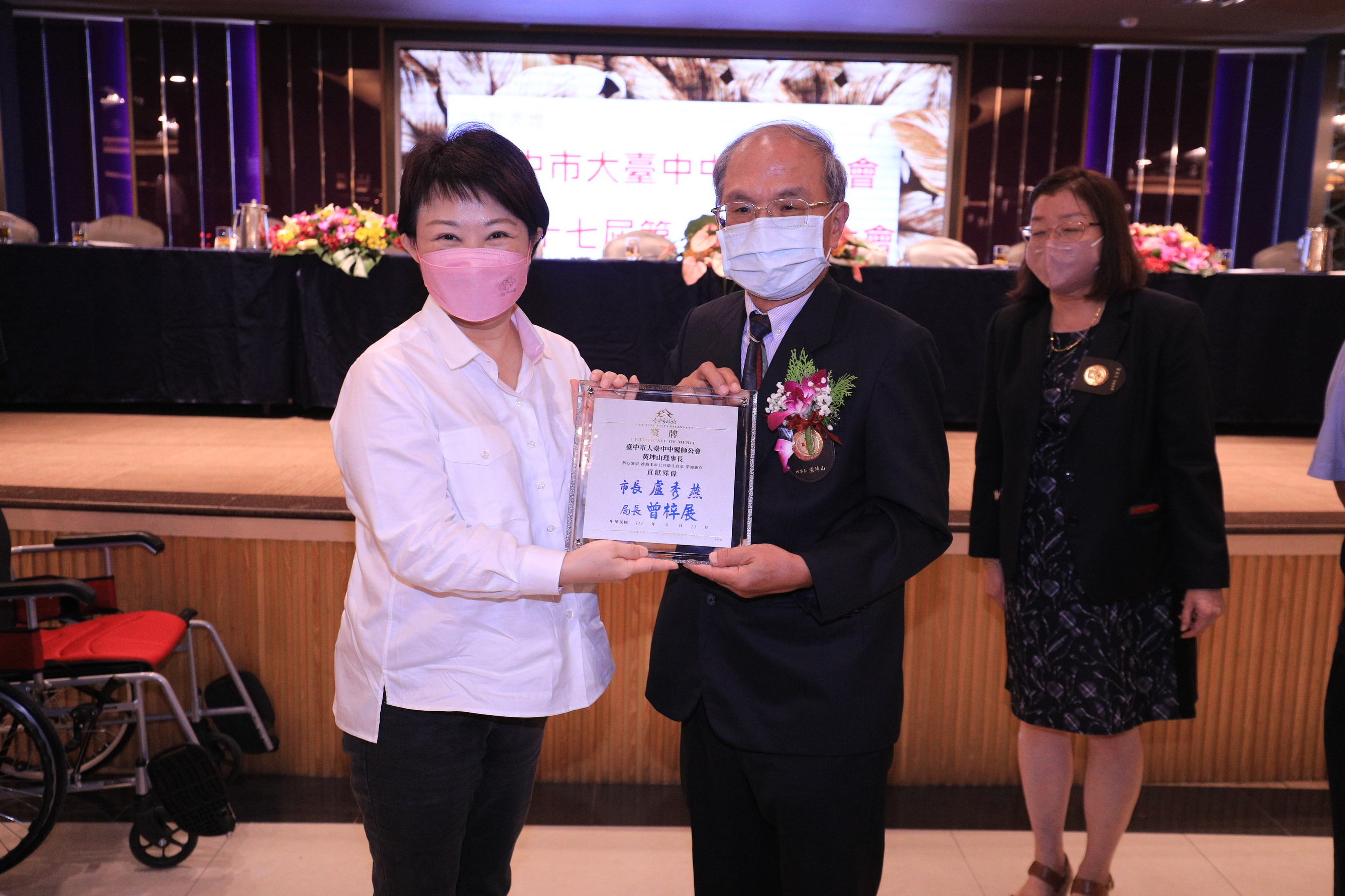 今日適逢大台中中醫師公會現任理事長黃坤山卸任,盧市長特頒獎牌感謝黃理事長任內,爭取中醫界權益,帶領中醫界配合政府防疫政策,確實照顧市民健康。她也代表市民對勞苦功高的中醫師們獻上最高敬意,以及感謝大家義無反顧全力支援市政,也期勉他們以專業持續守護每位市民健康!