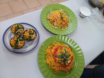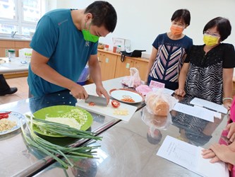 參與成員興奮分享,前陣子因為疫情緊張不敢出門,家庭氣氛沉悶,這是他近幾個月來首次踏出家門,一口氣報了4堂課,感到愉悅又療癒,還學到講師的獨門絕活;有成員感謝講師及同學溫暖支持,鼓勵他勇於嘗試,為料理設計擺盤;也有男性學員學到許多飲食知識,期待回家後與家人分享,烹調不同的有趣料理。