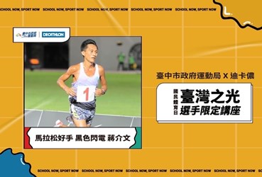 此外,台中之光運動推廣講座924日也將在迪卡儂南屯店舉行,邀請台中馬拉松好手蔣介文與民眾分享經驗,稱霸各級馬拉松賽事的他擁有「黑色閃電」的稱號,繼去年萬金石馬拉松成功封王後,睽違21年再度參加2022台灣田徑公開賽,即奪下男子50001萬公尺項目雙料金牌,時隔多年再出賽即囊括雙金,成為台灣田徑公開賽的傳奇。名額有限,歡迎民眾踴躍報名參加,詳情請上( https://events.decathlon.tw/activities/323340 )查詢。(9/5*10)*運動局